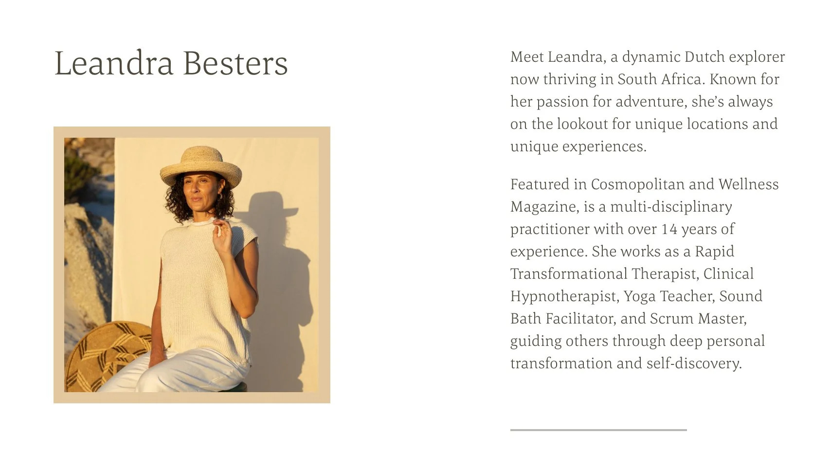 Across Muizenberg’s beach, perfect for a surf or a walk before or after your session.